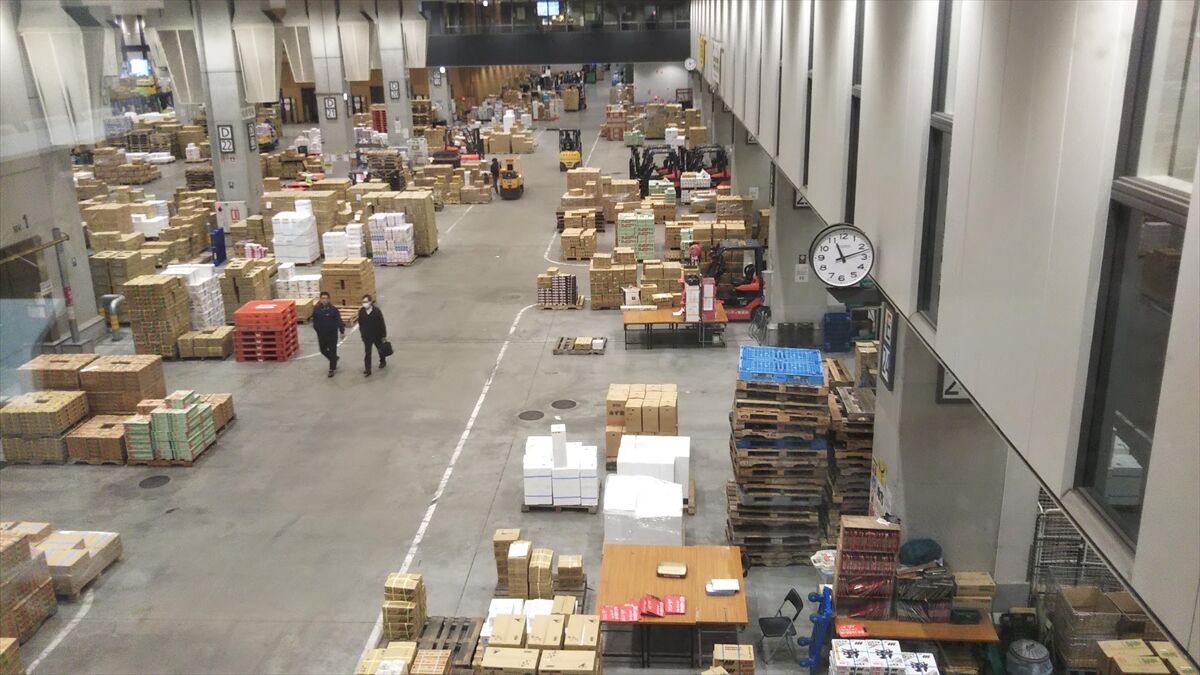 投稿日: 2024年2月28日豊洲市場クワイ部会で出荷先の豊洲市場で東京シティ青果の担当者と出荷反省会を行いました。「D20」この場所でクワイのセリをやっていたそうです。市場の中右側がこのほど営業を始めた「千客万来」。その奥が豊洲市場水産棟。